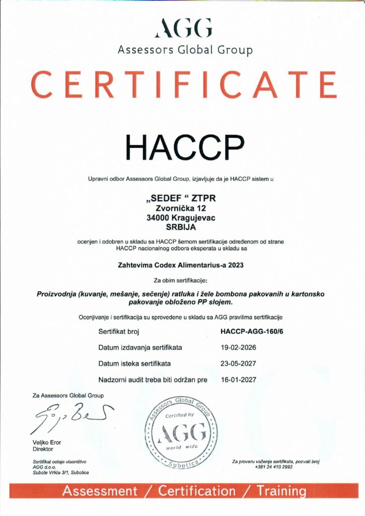 Kao temelj bezbednosti svakog našeg proizvoda, naš HACCP sistem je ponovo sertifikovan i u potpunosti usklađen sa međunarodnim preporukama.